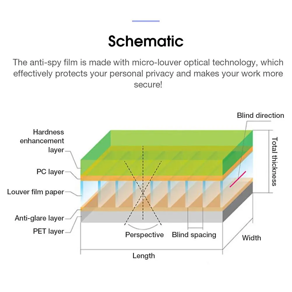 Anti-Peep film application of ultra-fine shutter optical technology,the screen’s viewing angle control in the front 60 degrees, the protection of commercial secrets and personal privacy, the use of more freedom, more secure information!