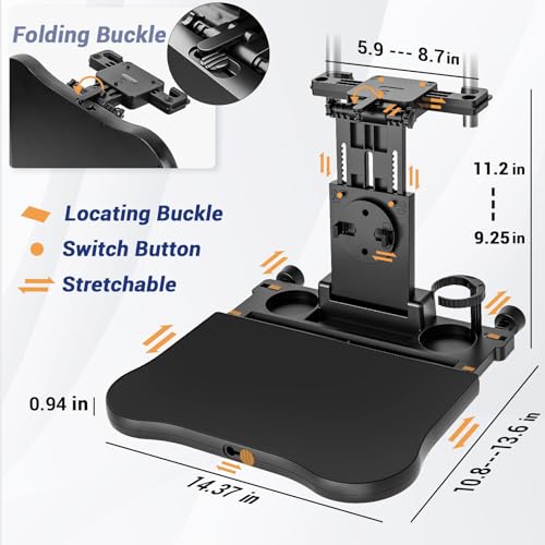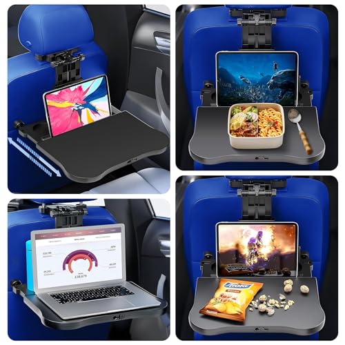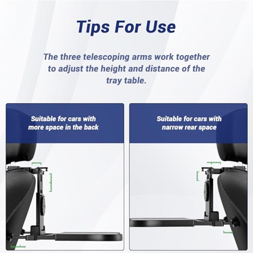 About this item 【MULTIFUNCTIONAL CAR BACK SEAT TRAY TABLE】It has a table, two cup holders, and a phone holder that can be rotated 360°. The phone holder can be extended up to 9 cm to fit most smartphones on the market. 360° rotation allows you to watch mobile videos at any angle. The table is adjustable up and down and can be easily used by both children and adults. It’s easy to work, eat, read, write, watch videos or put drinks in the car. It will provide entertainment for you and your passengers. 【LOAD CAPACITY 15-20KG】The foldable car backseat tray table can also be used to hold heavy objects. The backseat car table is made of high-quality ABS material, durable, stable and sturdy, with an excellent load capacity of about 15-20 kg! It can be used in any situation. It’s a great car gift! 【SPACE SAVING】 This folding car table does not need to be disassembled. When folded, it takes up little space in the car and is only about 1.57 inches thick. It saves time and effort to put away and can accommodate laptops up to 15.6 inches. The two cup holders of the car travel table have a base diameter of 2.75 inches and can accommodate a variety of beverage bottles with a base diameter of no more than 2.75 inches. 【GOOD STABILITY AND SAFE TO USE】The triangular support makes it stable and will not fall. Two support legs can be rotated. Better and more stable fixation on the car seat in use. Very safe! Do not damage the car. A non-slip rubber mat is included to protect the auto back seat tray desk. The back of this pad is not sticky and can be easily removed and cleaned with water. You can also use double-sided tape or strong glue to stick on the travel table for easy storage. 【QUICK INSTALL 】 Easy to install without any tools. For more about installation please refer to our install guide video. Note: Use only if your car seat has a headrest bar! Applicable range: car seat lever pitch range 9-22 cm/3.54 -8.66 inches (please measure the pitch of your car headrest lever before purchase). Brand: AUEOTUAR. If the product is defective, we provide a 12-month warranty and friendly customer service, any problem please contact us! › See more product details